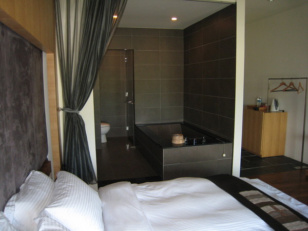它的浴室蠻特別的,只有一個大拉簾與房間隔開,是我最喜愛的一部份。