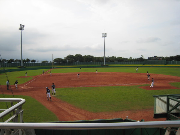 接著我們去冬山河逛了一下,裡面有龍舟隊正在進行訓練,然後前往羅東運動公園,這張照片是羅東運動公園的棒球場。