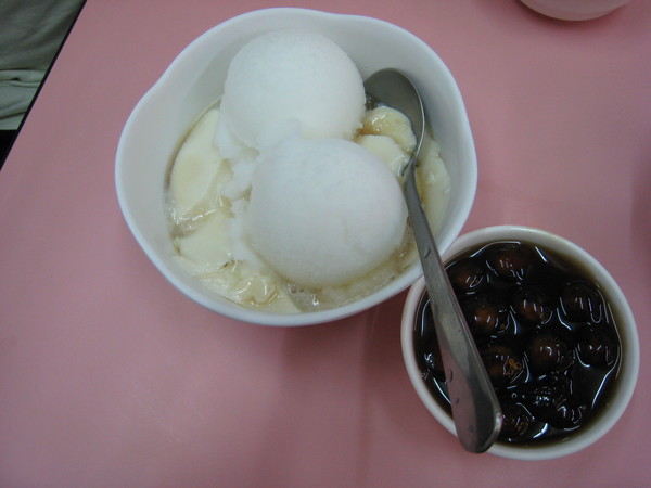晚上又去羅東夜市吃東西,這是著名的包心粉圓,粉圓裡面有包紅豆而且是熱的,吃起來「冰火」的感覺相當夠勁。不過其中的豆奶豆花算是個雷,要特別注意。
